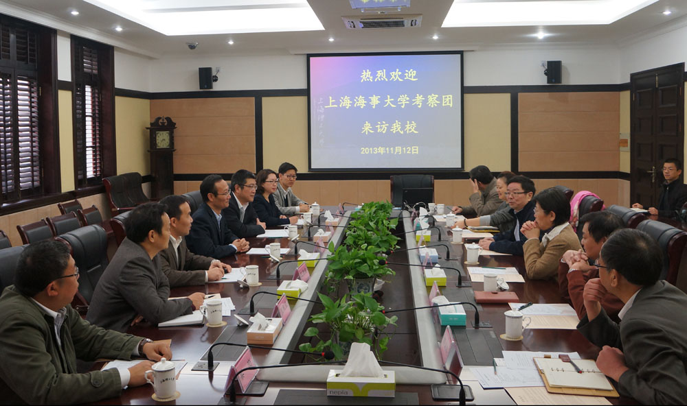 11月12日下午,上海海事大学校长黄有方率队来我校考察。校党委书记高德毅、校长胡寿根亲切会见了考察团成员,副校长田蔚风和有关职能部处负责人参加了座谈交流。