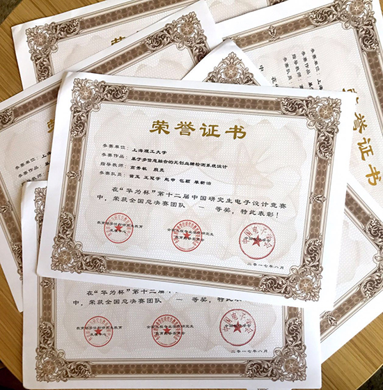 1) 技术类全国一等奖:黄斐, 周郑, 郑海燕, 苏丹, 田胜楠——手持式拉曼光谱分析仪,指导教师:郭汉明