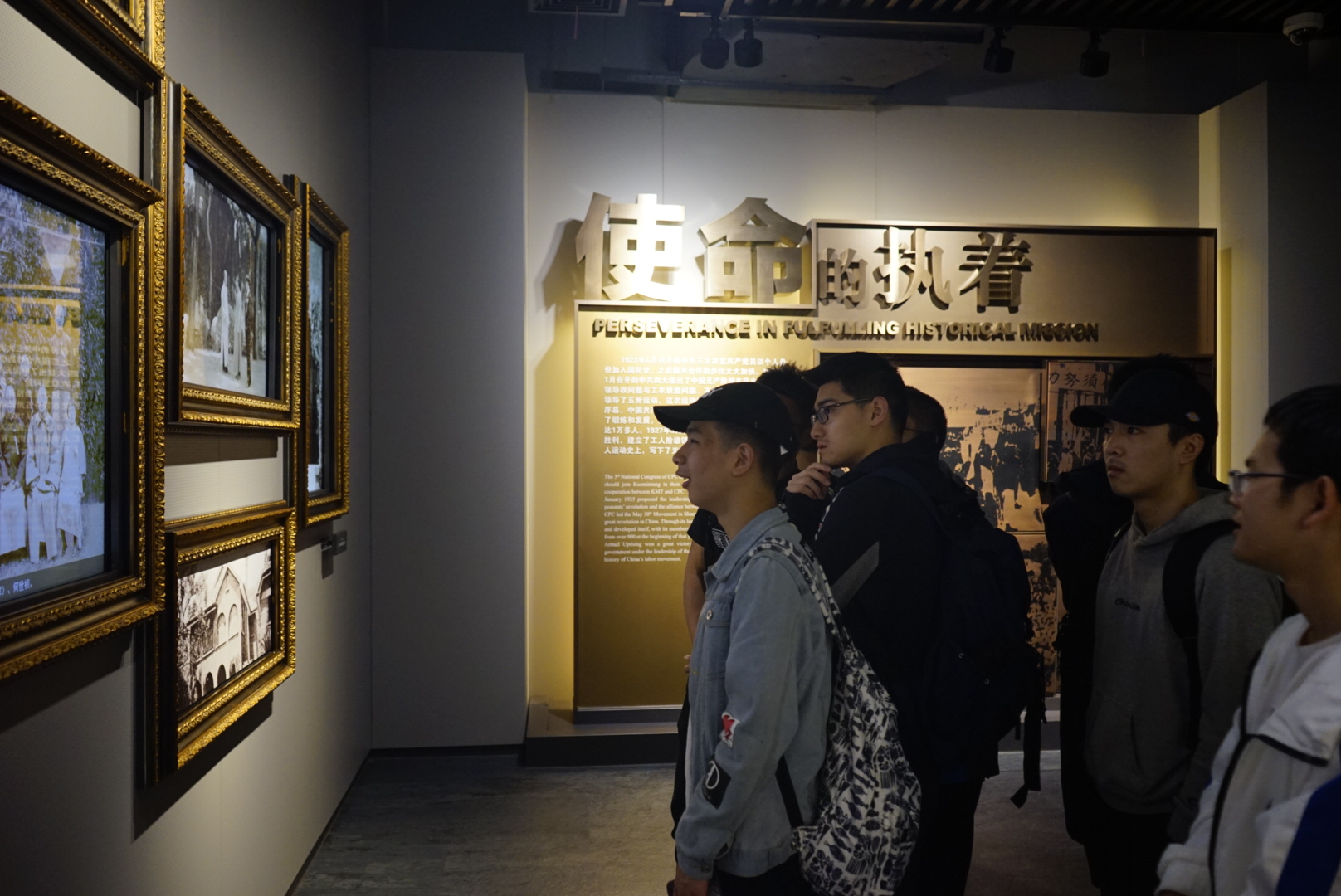 当迈出那个庄严又不失生机的陵园后,大家又马不停蹄的赶往中共一大会址——中国共产党的诞生地。漫步在中共“一大”会址的展厅,恍惚中犹如跨越时空,亲历那改变中国历史的拐点。里面排放了中国共产党的历史文物,收集了很多革命战争时期的战况,展示了中共革命前辈的资料,大家不自觉地放慢脚步,用心去体会和铭记这件件展品中记载下的中国共产党沉甸甸的历史与精神。