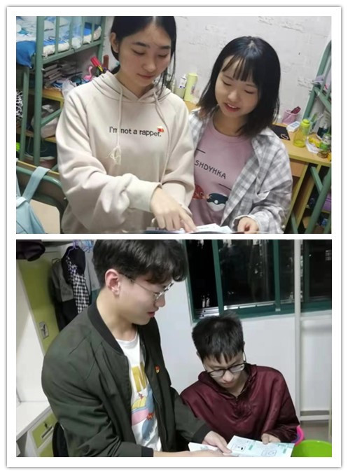 图 1 党员到学生宿舍内发放知识手册进行垃圾分类宣传