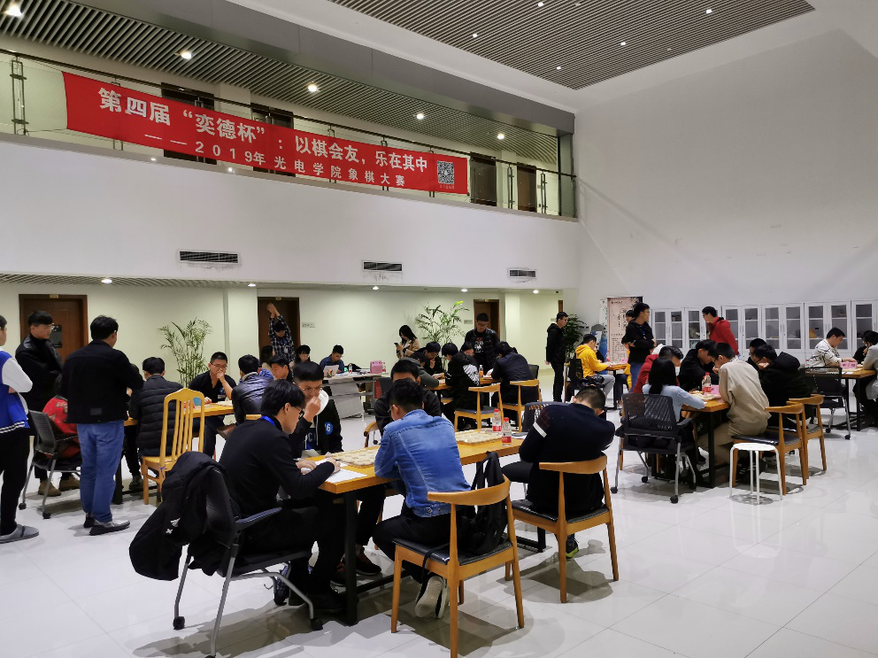 为继承中华民族优秀文化遗产,提高我校学生道德素质与文化素养,进一步丰富研究生的校园生活,增进象棋爱好者之间的交流,进一步提高棋艺水平,光电学院组织开展第四届“奕德杯”象棋大赛。12月5日,“奕德杯”象棋大赛决赛在新光电楼九楼大厅举行,光电学院党委副书记曹英应邀出席,并为获奖选手颁奖。