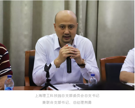 上海理工科技园总支部委员会总支书记兼联合支部书记、总经理荆勇为本次活动作了开场发言,阐述了此次活动恰逢党的生日的重大意义,表达了希望在座党员更加深入学习和领会习近平新时代社会主义理论,探索加强“两新”组织基层党建工作的方法,引导“两新”企业更好发展,并为“两新”企业提供更好的相关服务的意愿。