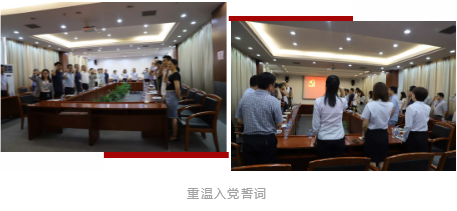 随后,在陈书记的领誓下,全体与会党员开展重温入党誓词仪式。一句句铿锵有力的誓言,响彻整个会场,表达了全体党员的心声,也是在庆祝建党九十八周年生日这天献上的最好的一份礼物。