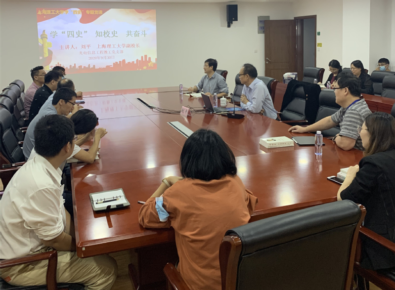9月30日上午,副校长刘平赴光电学院以“学‘四史’、知校史、共奋斗”为题,给所联系的光电信息工程教工党支部教师党员们和联建共建的学生党支部部分学生代表带来一场有深度、有情怀、有温度的专题党课。
