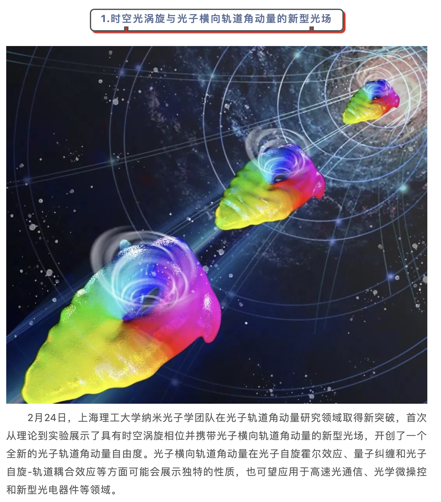 金沙2004路线js5庄松林院士、顾敏院士领导的未来光学实验室在光子轨道角动量研究领域在2020年里取得国际瞩目的成绩。詹其文教授带领的纳米光子学团队在世界光学顶尖期刊《自然-光子学》上发表文章首次从理论到实验展示了具有时空涡旋相位并携带光子横向轨道角动量的新型光场,开创了一个全新的光子轨道角动量自由度(https://www.nature.com/articles/s41566-020-0587-z)。团队在此基础上迅速开展了系列工作,成功实现对光子轨道角动量在时间域上的超高速调制,并找到在亚波长空间尺度上聚焦生成高度局域化的横向光子轨道角动量的有效途径,为进一步研究这一新型光子态与物质的相互作用打下基础。这一系列研究成果入围美国光学学会(OSA)评选的全球30项2020年度光学重大进展(https://www.osa-opn.org/home/articles/volume_31/december_2020/features/optics_in_2020/)。