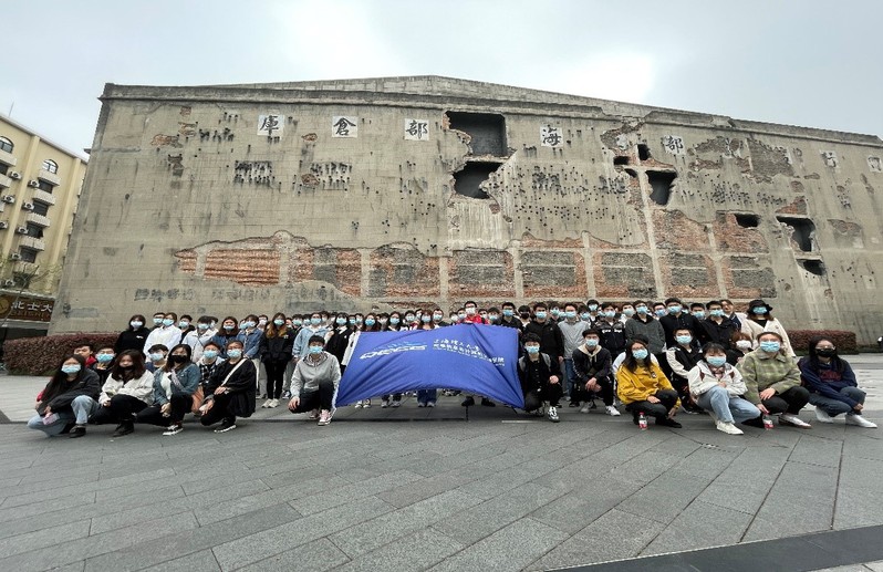 光电学院党员学生在四行仓库抗战纪念馆前合影