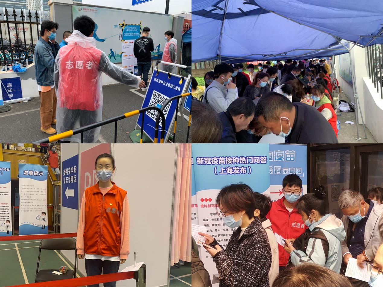 一大早,上海市杨浦体育馆东门外,前来接种疫苗的人们就排起了长队。在一个个身穿红马甲的志愿者引导下,疫苗接种工作得以井然有序地开展。整个疫苗接种流程包括前端引导入馆,在等候区进行知情同意信息核验后,正式进行疫苗接种,而后需要在留观区观察半个小时。面对每天数以千计的接种人群,每一位志愿者都坚守在属于自己的岗位上,不断挥动手臂依次引导人群前进,及时解答大家的疑问,冷静处理各种难以预料的情况,保障着接种工作的顺利进行。