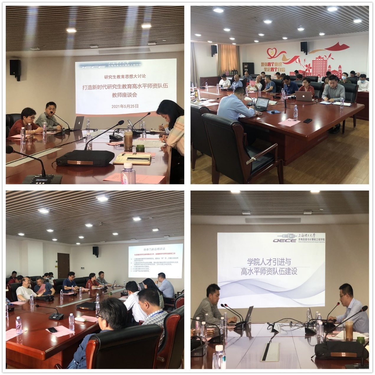 彭敦陆首先向与会人员介绍了本次研究生教育思想大讨论的背景、意义、相关文件及学院活动安排。王张琦传达了国家、上海市及学校研究生教育会议精神,解读了金沙2004路线js5研究生教育思想大会的主要内容和实施细则。副院长刘伟总结了学院“十三五”期间人才引进工作情况,报告了“十四五”人才引进工作计划和师资建设措施及2021年人才引进工作具体做法。控制系系主任王朝立教授、光电系系主任郭汉明教授、计算机系系主任杨桂松副教授、信息与通信工程学科带头人杨晖教授、计算机科学与技术学科带头人陈庆奎教授及青年教师代表进行了发言。老师们感谢学校和学院在研究生师资队伍建设方面给予的支持,并对取得成果表示认可,随后大家围绕如何打造新时代研究生教育高水平师资队伍积极建言献策。学院将以高水平大学建设为契机,引育结合,落实“人才强校”主战略。一方面,加大高水平人才的引进力度,另一方面,注重存量师资的培养,构建层次更加合理的高水平师资队伍,更好地服务学院研究生教育与培养工作。