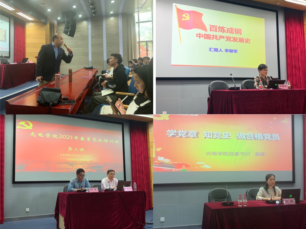本期党校培训共开展四次理论教学,分别邀请了来自高校与企业的党建工作相关负责人,从不同的视角为学员讲解党史学习方法以及党史学习重点内容。中国浦东干部学院经济学博士后刘安,以“从个人发展谈青年党员初心”向学员全面分析了社会主义制度优越性,并以个人学习经历激励青年党员勿忘初心;上海第二工业大学马克思主义学院教授李朝军为学员开展“百年成钢:中国共产党发展史”的主题讲座,用大量史实深入分析了为什么要开展党史学习教育以及党史的主题主线和主流本质;国泰君安证券党委办公室姚晓光,以“文化与文化自信”为题,以生动的语言向学员全面讲解文化的本质与文化自信的必要性,激励学员做好优秀文化的记录者和传承者。本期党校最后一讲由光电学院党委书记袁媛做“学党章·知党史·做合格党员”主题讲座,袁书记带领全体学员翻开党章,系统梳理了党章结构,一一解读党章内容,并叮嘱学员课后勤学党章,加强自身修养,以学习和思考促进实践。