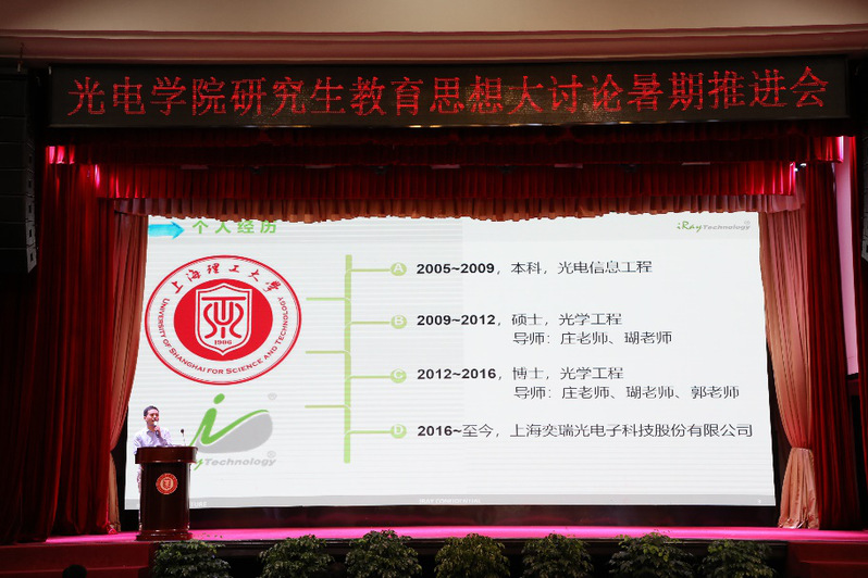 最后,本、硕、博均就读于我校光电学院光学工程专业、现任上海奕瑞光电子科技股份有限公司高级经理的高鹏飞校友与学弟学妹们分享了研究生学习生活和就业工作经验。他指出,找到好的工作,行业、发展、环境、机遇都是必不可少的,更少不了自身的能力、责任心、系统思维和大局观。