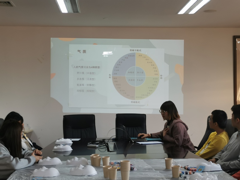 接着,刘昕彤老师向各位同学详细讲解了心理学中“气质类型”的概念,并对胆汁质、多血质、粘液质和抑郁质四种气质类型的特点和代表人物进行生动讲解。随后,老师为在座的每位同学发放了气质类型测试题目,并带领同学们共同完成测试。根据每个人的得分情况,刘老师引导同学们确定自己所属气质类型,帮助同学们更好地了解自己和身边同学的性格特征、心理状态。