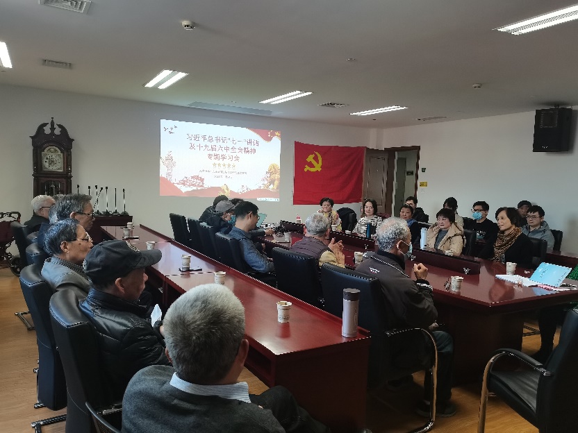 1124日,光电学院退休一支部和精密与仪器研究生党支部开展了党建联建活动,共同学习了习近平总书记“七一”讲话精神和十九届六中全会会议精神,并邀请刚从美国回来的陈老师介绍国外疫情情况。