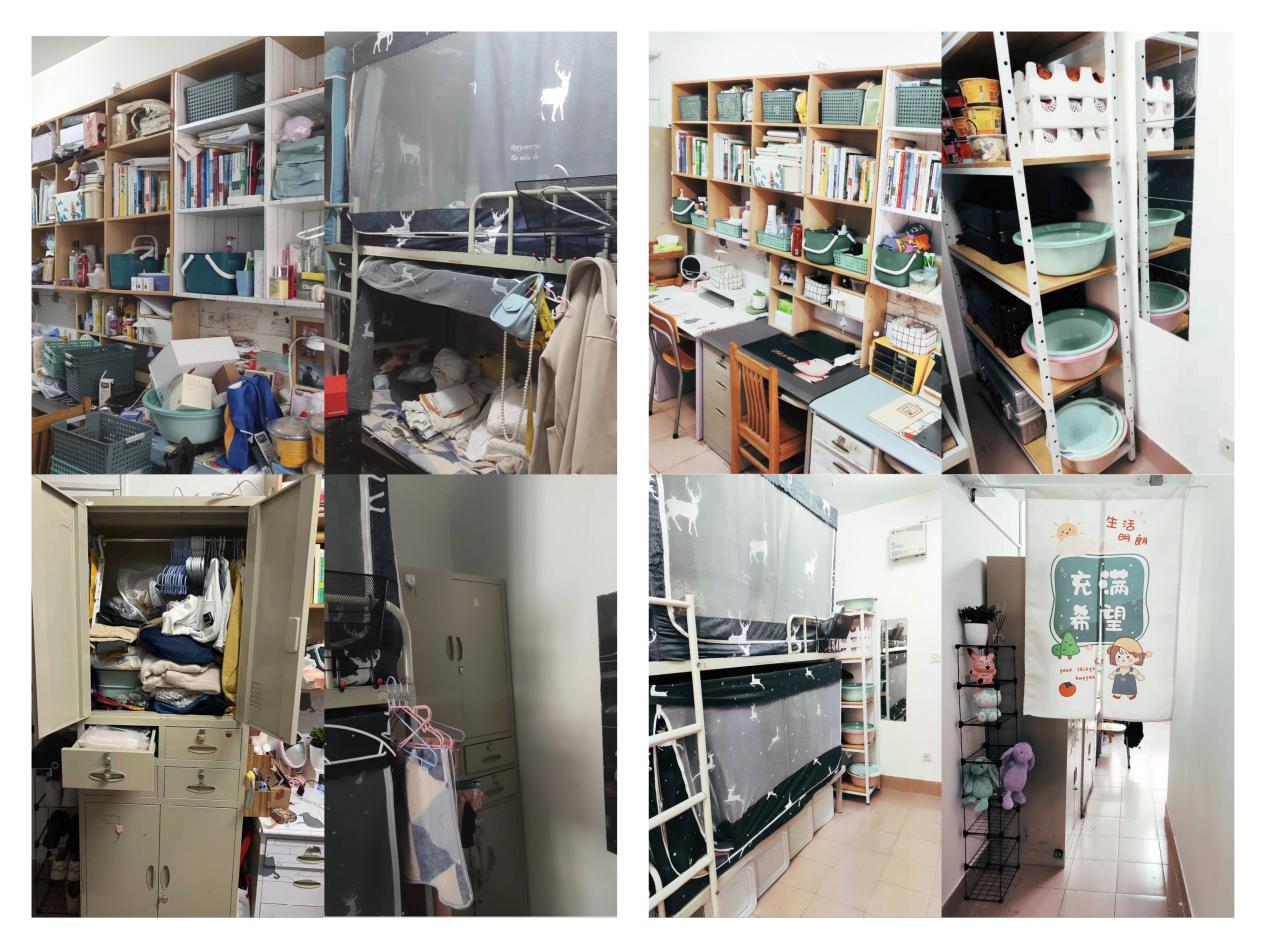 125日,寝室成员们先将自己的物品全部陈列出来,“断舍离”后就开始在收纳老师的指导下进行分类、折叠、收纳、放置,用时六小时打造出大家梦想中的寝室。“从来没想过我们寝室居然也能这么大”、“想邀请所有人来我们寝室参观,我得先发条朋友圈炫耀一下”、“在这样的环境中学习生活心情都好很多,不过更重要的是要督促自己保持下去”……同学们看着自己的劳动成果都很兴奋。