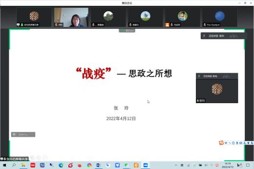张玲老师通过“战疫——思政之所想”的报告,介绍了这次疫情期间,发生在身边的人和事中的思政元素,体现出的光电“战疫”宗旨,那就是“抗疫第一,不停教,不停学,不停研”。从学院领导,到专业教师,从党员先锋,到学生群众,都积极探索,创造条件,共渡难关。疫情限制了我们的活动空间,但不能影响我们的思维空间。疫情期间大家凝聚力量,增强了专业认同感,每个教师学生都在用自己的方式,贡献着抗击疫情的力量。这些抗疫过程中的感人事迹和动人瞬间,无一不反映出教师同学们的爱党爱国,爱校护校,敢于担当,甘于奉献的精神。各位教师在开展课堂教学和培养研究生的过程中,要将这些鲜活的事迹和典型的案例融入到课程思政建设当中,用好抗疫的活教材,把上海当前抗击新冠疫情的伟大实践有机融入到思政教育之中,增强学生的亲身体验与实际感悟,增强课程思政的针对性和时效性。