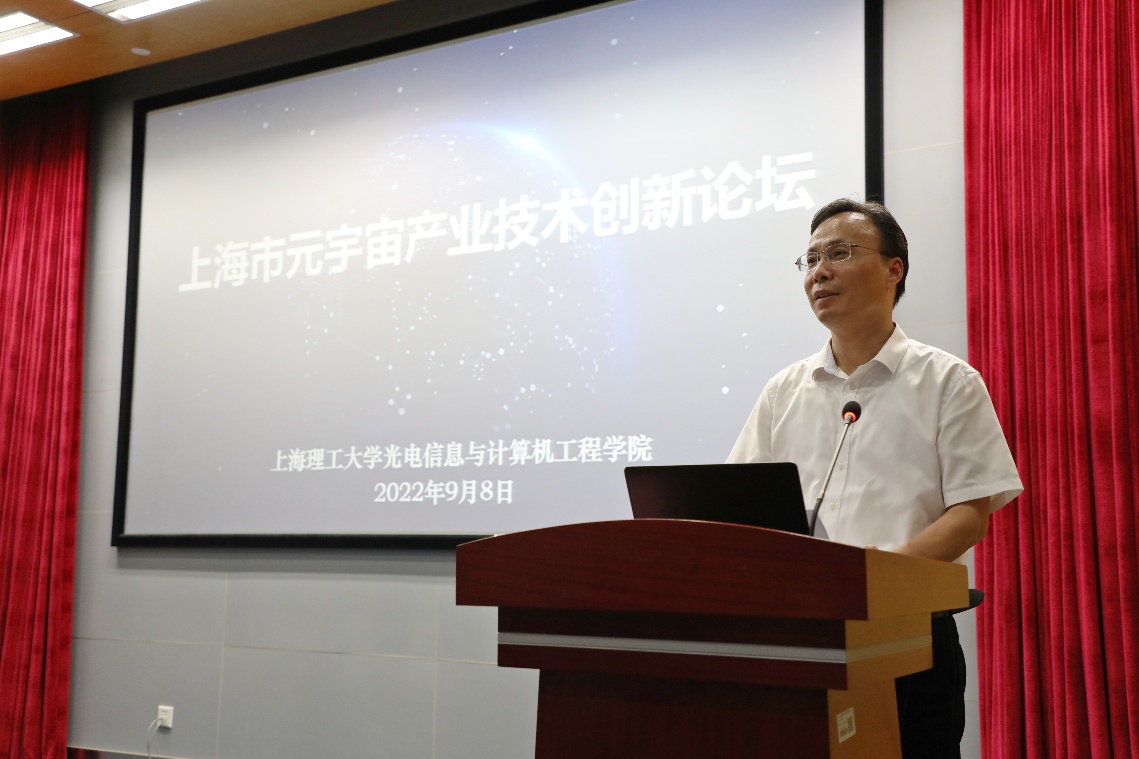 9月8日,上海市元宇宙产业技术创新论坛在金沙2004路线js5金沙2004路线js5报告厅举行。元宇宙领域的专家学者、企业家代表共同探讨元宇宙科技前沿,交流碰撞思想观点,力促产业合作共赢。论坛由光电学院常务副院长张大伟教授主持。