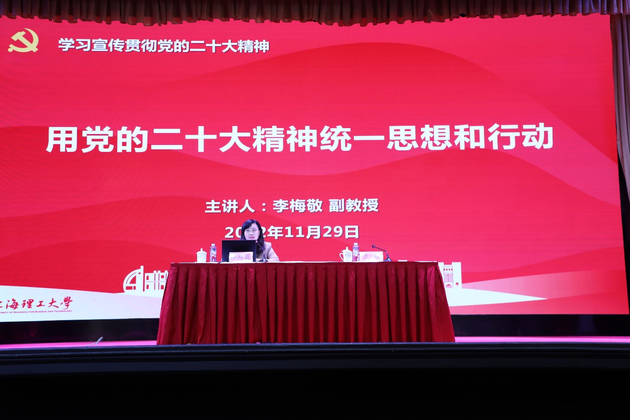 11月29日下午在学校大礼堂,学院举行了学习宣传贯彻党的二十大精神宣讲报告会,学院教职工和部分学生党员300余名师生参加。马克思主义学院李梅敬副教授做了题为《用党的二十大精神统一思想和行动》的专题报告。报告会由学院党委书记袁媛主持。