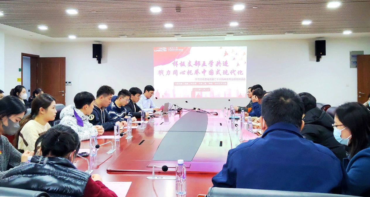为深入学习宣传贯彻党的二十大精神,全面理解和准确把握党的二十大报告的丰富内涵和精神实质,充分发挥样板党支部的示范引领和辐射带动作用,激励广大党员为中国式现代化贡献力量。12月7日,光电学院光学工程(学硕)研究生党支部联合光电信息工程教工党支部开展学习宣传贯彻党的二十大精神系列主题党日活动。光电学院党委副书记何可出席,光电信息工程教工党支部党员代表、光学工程(学硕)研究生党支部全体党员、光学工程(专硕)研究生党支部部分党员代表参加本次主题党日活动。此次活动由光电信息工程教工党支部书记冯吉军主持。