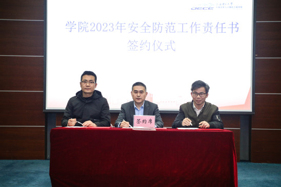 在学院2023年安全防范工作责任书签约仪式上,常务副院长张大伟代表学院与系、团队和实验室安全负责人代表进行签约,进一步在全院牢牢树立安全发展意识、兜牢安全发展底线,做好安全发展屏障,保障学院事业发展行稳致远。