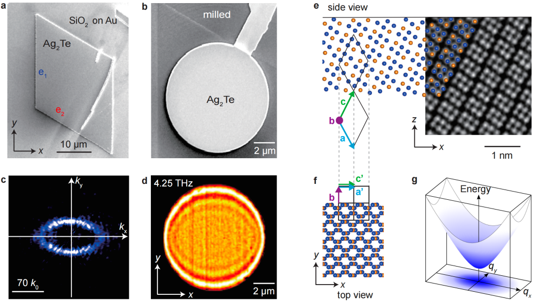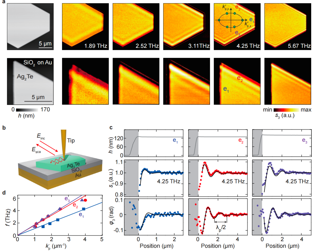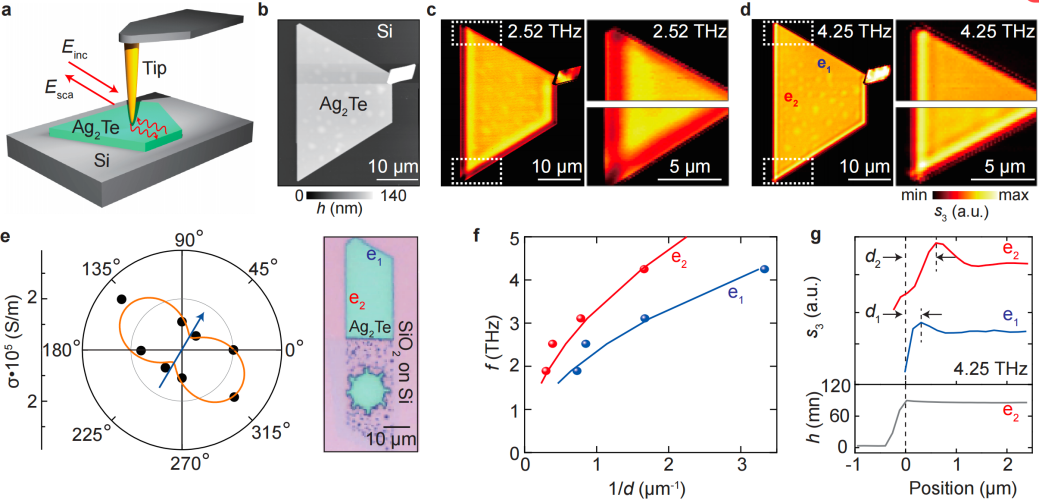 图3. Ag2Te-SiO2-Au异质结中面内各向异性的太赫兹声学等离激元近场成像。