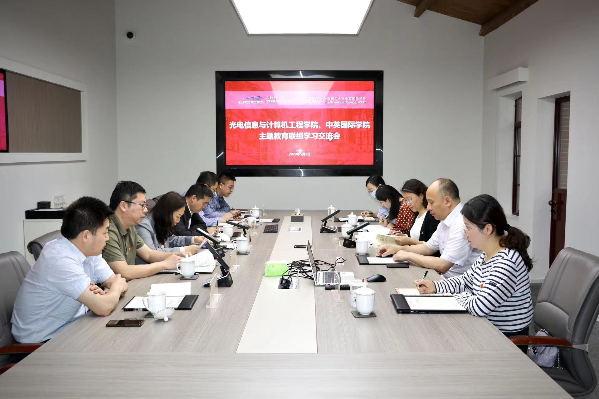 接着,光电学院副院长彭敦陆作《数字化赋能,助力开启新时代调查研究新篇章》专题分享。随后,中英学院常务副院长单彦广,光电学院党委副书记、常务副院长张大伟分别介绍了各自学院整体情况。双方希望,以本次主题教育专题联组学习为契机,紧密围绕学院事业高质量发展主线,共同聚焦发展中的面临重点和难点问题,并就专业学科建设、师资队伍建设、国际合作办学等工作进行了深入探讨。