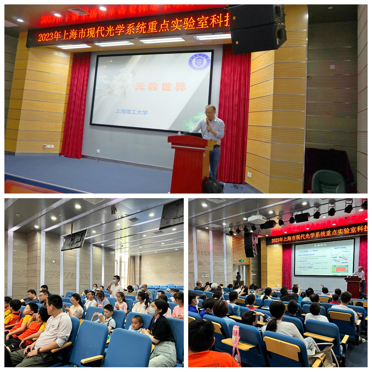 下午一点科技节活动在金沙2004路线js5金沙2004路线js5光电报告厅准时拉开序幕。上海市青年拔尖人才臧小飞教授为大家准备了科普讲座,带领大朋友和小朋友们一起探寻了“光的世界”,深入浅出地向大家介绍了生活中常见的光学应用。小朋友们沉浸其中,并积极参与有奖知识问答,热情的互动展现了对“光”的兴趣和热情。
