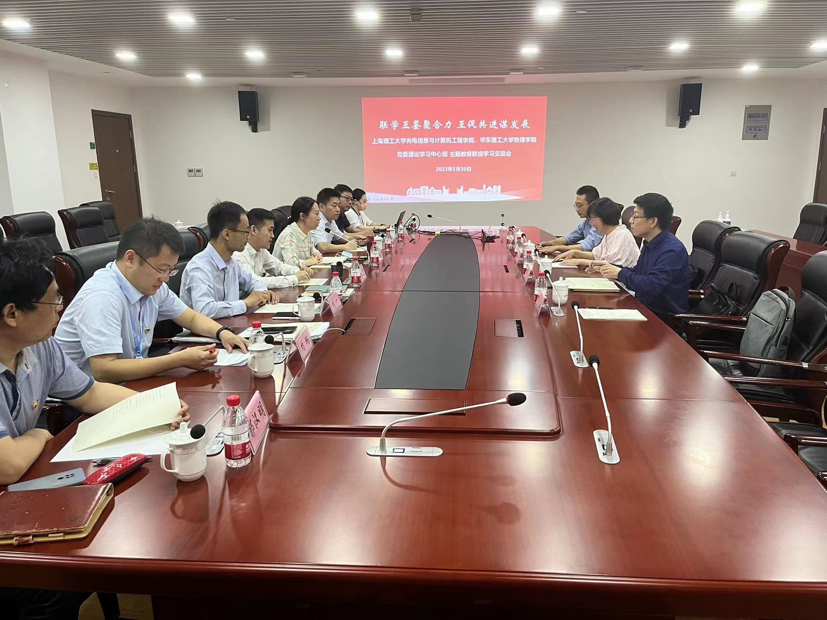 为深入开展学习贯彻习近平新时代中国特色社会主义思想主题教育,5月30日上午,金沙2004路线js5光电学院党政班子与华东理工大学物理学院党政班子,以“联学互鉴聚合力,互促共进谋发展”为主题开展联组学习。学习会由上理工光电学院党委书记袁媛主持。