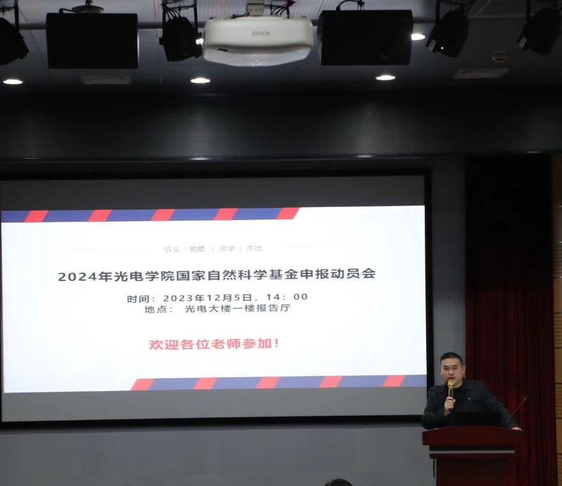 为提高我院国家自然科学基金项目(以下简称“基金”)申报质量,使初次申报的青年教师全面了解基金并准确、及时地掌握基金申报的注意事项,学院于12月5日下午在光电大楼一楼报告厅举办2024年基金申报动员会。学院教师及新进博士后共130余人参加了动员会,会议由张大伟常务副院长院长主持。