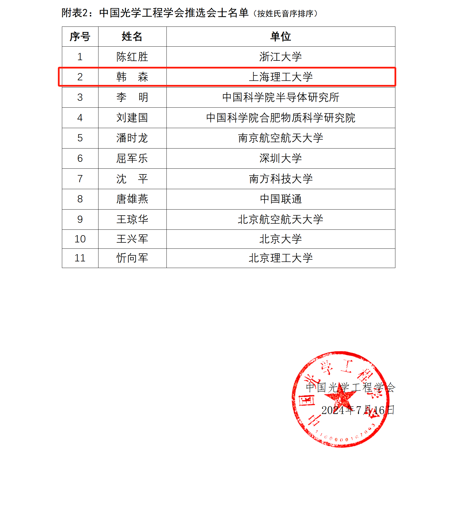 近期,中国光学工程学会公布了2024年度中国光学工程学会会士名单,金沙2004路线js5韩森教授被授予“中国光学工程学会会士”的称号。