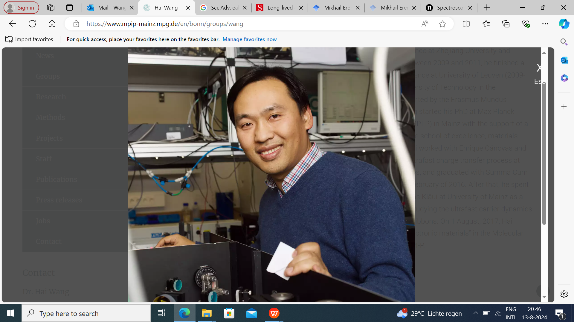 Dr. Hai Wang studied materials science at Zhejiang University and obtained his degree in 2009. Between 2009 and 2011, he finished a joint master program in nanoscience at University of Leuven (2009-2010) in Belgium and Delft University of Technology in the Netherlands (2010-2011), supported by the Erasmus Mundus fellowship. From 2012, Hai Wang started his PhD at Max Planck Institute for Polymer Research (MPI-P) in Mainz with the support of a fellowship from MAINZ (graduate school of excellence, materials science in Mainz). In his PhD, Hai worked with Prof. dr. Mischa Bonn to investigate ultrafast charge transfer processes at quantum dot and oxide interfaces, and graduated with Summa Cum Laude (with highest honors) in 2016. After spending 1 year in the group of Mathias Kläui at University of Mainz as a postdoc, Hai started his independent research group “Nano- optoelectronic materials” in the Molecular Spectroscopy department at MPI-P in 2017, and further moved to Utrecht University as an (tenured) assistant professor. Employing time-resolved, ultrafast spectroscopies (THz spectroscopy, transient absorption etc.), the central theme of Hai’s current research lies in understanding fundamental charge carrier dynamics and low-energy excitations in solid-state low-dimensional materials and interfaces, relevant for energy and optoelectronic applications.
