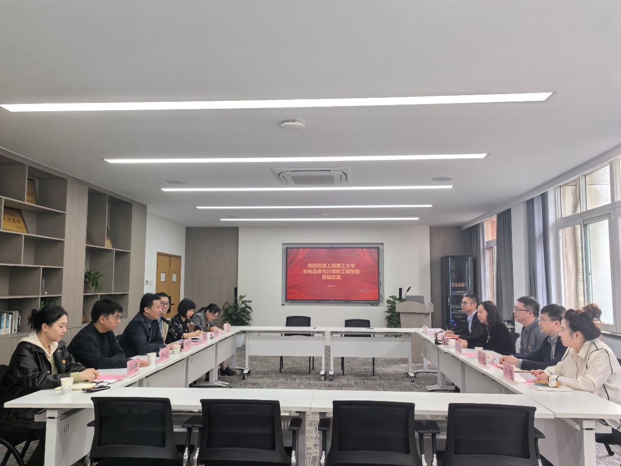 朱明辉首先对上理工光电学院一行的到来表示欢迎,并交流分享了学院在申报和创建“全国党建工作标杆院系”过程中的经验。