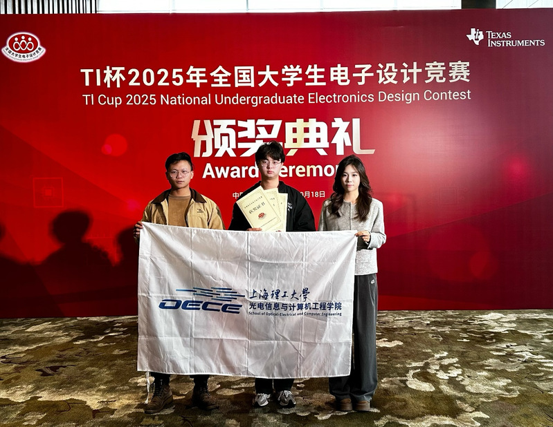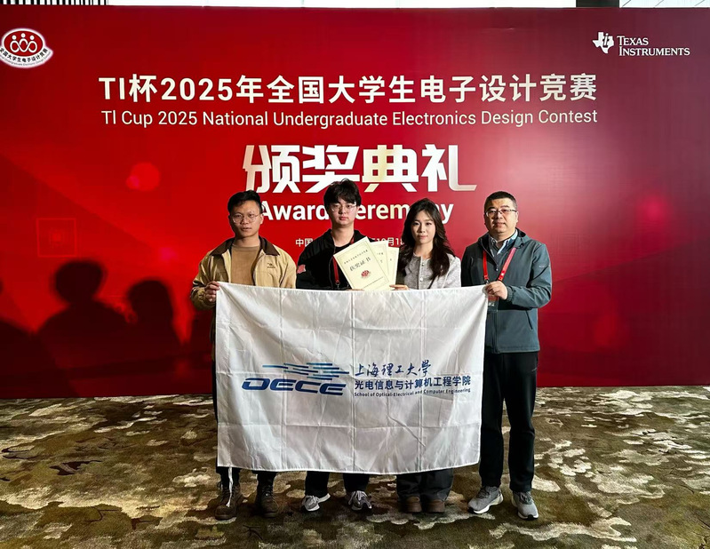 2025年全国大学生电子设计竞赛已于8月22日在大连理工大学圆满落幕。经过近2个月的筹备,2025年全国大学生电子设计竞赛总结暨颁奖大会于10月18日下午14点在京隆重举行,我院学生陶均泉、闫曦月、徐志鹏三位同学和指导教师瑚琦副教授赴京参加典礼。