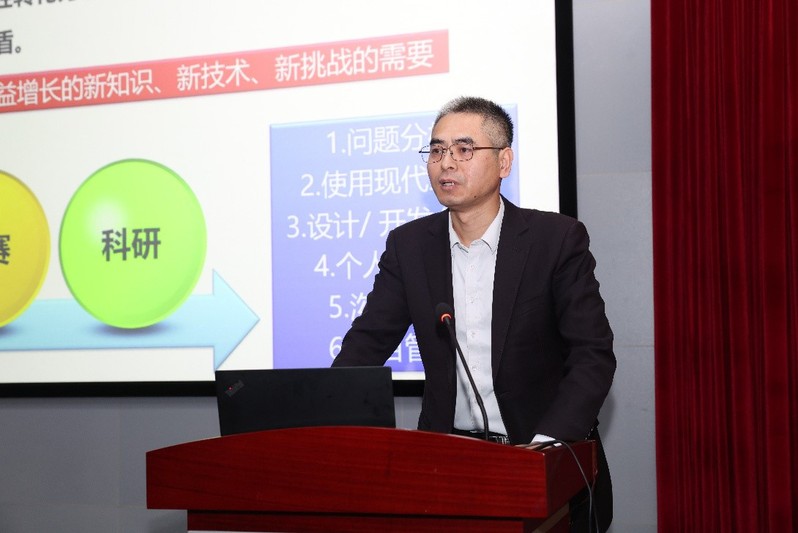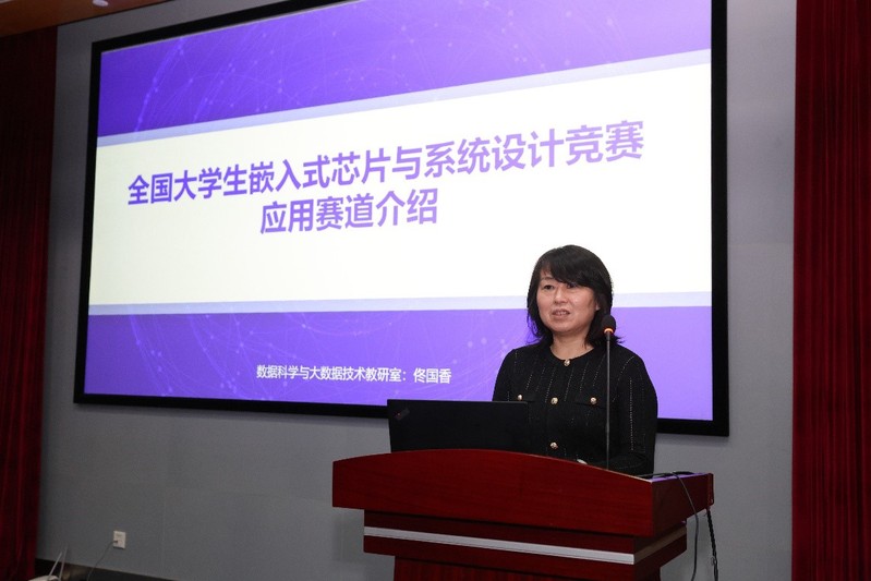 院士创新班指导教师佟国香教授为学员们介绍了大学生嵌入式芯片与系统设计竞赛的相关内容,分析了不同赛道的特点,并展示了学校历年参赛成果,鼓励同学们以赛促学,提升创新实践能力。